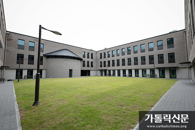은총의 성모마리아 기도학교 가운데에 있는 중정. 기도에 집중할 수 있도록 외부와 차단된 건축 구조로 지어졌다.